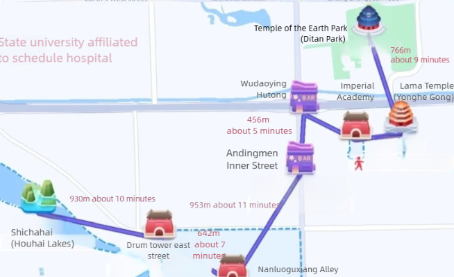 7. Drum Tower East Street Dongcheng District A lively street connecting historic landmarks, offering traditional Beijing cuisine, local shopping, and easy access to the ancient Drum and Bell Towers.